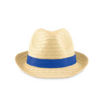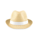 Paper straw hat with coloured polyester band. For unprinted orders the band will be supplied unattached to the items.