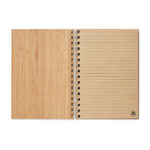 Bamboo cover notebook. Twin-wire ring bound, 140 lined kraft paper pages (70 sheets). Bamboo is a natural product, there may be slight variations in colour and size per item, which can affect the final decoration outcome.