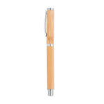 Bamboo barrel roller ball pen with stainless steel fittings. Blue gel ink. Take your notes during important meetings with this gel pen. The sustainable and natural bamboo material gives it a modern and stylish look. Bamboo is a natural product, there may be slight variations in colour and size per item, which can affect the final decoration outcome. FSC®-certified | FSC 100%, N10, FSC-C213206