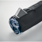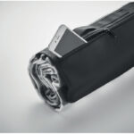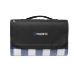 Foldable RPET 150 gr/m² polar fleece picnic blanket with water resistant coated PEVA reverse side. Includes a front zipper pocket and short carry strap.