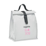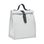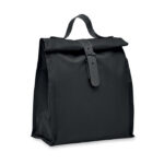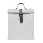 600D RPET polyester insulated roll top lunch cooler bag with PU handle and closure. Insulation: 3mm PE foam with PEVA.