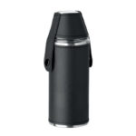 Hip Flask in stainless steel with PU Leather surface and 2 pieces stainless steel 20ml shot cups in lid. Capacity: 230ml.