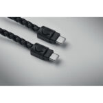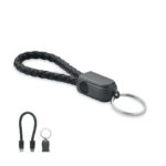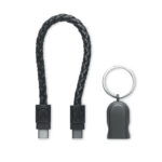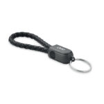 Key ring loop with charging and data transfer 60W cable type-C to type-C in PU with zinc alloy braided detail.