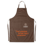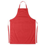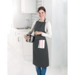 Adjustable kitchen apron with 2 front pockets in 10% cotton/90% polyester, 190gr/m². This product is OEKO-TEX® STANDARD 100 certified.