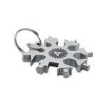 Multi-tool 17-in-1 stainless steel snowflake shaped. Optional metal ring included.