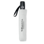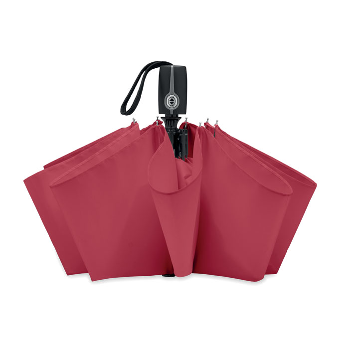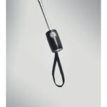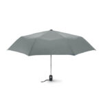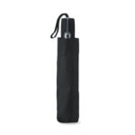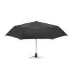 21 Inch Luxe 3 fold automatic windproof umbrella in 190T pongee with zinc plated steel shaft, black ribs with 2 sections fiberglass and chrome metal tips , black rubberised handle with doming. Includes matching pouch. Auto closure.