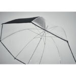 23-tolline sirge vihmavari POE-materjalist, ühe polüesterpaneeliga trükiala jaoks. Klaaskiust ribid ja raam, kroomitud vars, kummiviimistlusega käepide
