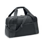 Travel or sports bag in 300D ripstop with PU details with front zippered pocket. It has an inside pocket and 2 small padded compartments. Trolley holder on back side.