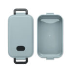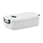 PP lunch box with airtight lid, silicone valve and two side buckles. Capacity: 800 ml.