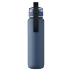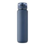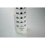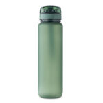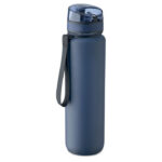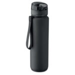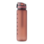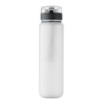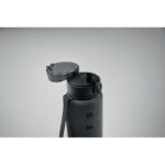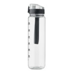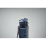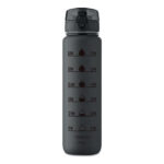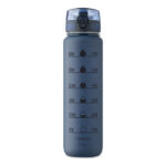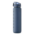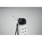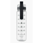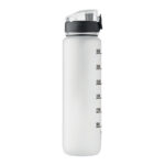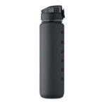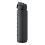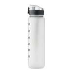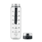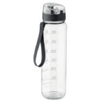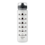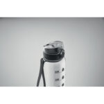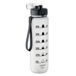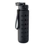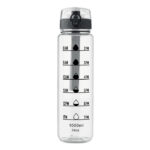 Sports water bottle in RPET, motivational time markings, one hand opening flip top lid, safety lock and carrying strap. Leak-free. Capacity: 1L.