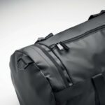 Duffle bag, sports or travel bag in 50C tarpaulin with zippered side compartment and zippered inner pocket. It has a comfort grip handle and padded base.