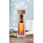 Topeltseinaga boorsilikaadist klaaspudel (420 ml) bambusest korgi ja teesõelaga. Kuna bambus on looduslik materjal, siis võib esineda erinevusi korgi välimuses
