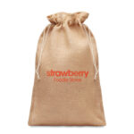 Large gift jute draw cord bag. Size approx. 30×47 cm. This product is OEKO-TEX® STANDARD 100 certified.
