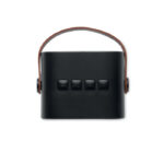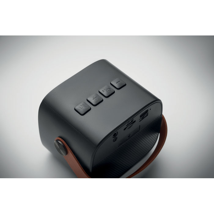 5.0 wireless speaker in recycled ABS with PU handle. 1 Rechargeable Li-ION 500 mAh battery included. Includes an SD card port and an AUX/ USB cable. Output data: 5W, 3 Ohm and 5V. Playing time approx. 4h.