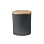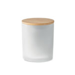Fragranced plant based wax candle in frosted glass jar holder with bamboo lid. 120 gr. Burn time: 20 hours. Presented in a paper tube gift box. Bamboo is a natural product, there may be slight variations in colour and size per item, which can affect the final decoration outcome.