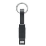 Key ring with 4-in-1 charging cable. In/Output: Type-C x2, Type-A, Micro USB.