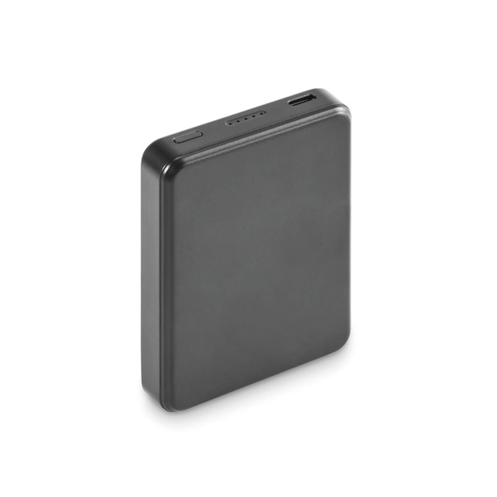 Power bank 5000 mAh in recycled ABS. Capacity for smartphone use, output current DC5V/1A and DC5V/2A. Includes indicating light and USB cable with micro USB plug. Supports quick charging technology (20W). In/Output: Type-C. Power delivery(PD) supports the newest laptops