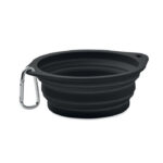 Collapsible portable silicone single drinking or food pet bowl with carabiner. Capacity: 350ml.