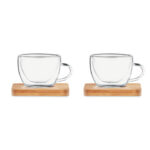 Klaasist espresso kruuside (90ml) komplekt (2tk) bambusest alustega. Pakitud jõupaberist kingikarpi