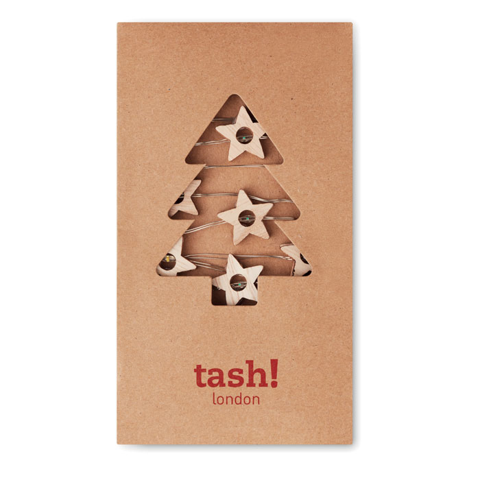 LED-tuledega puidust, tähekujulised jõuluehted kingikarbis. 2AA patareid ei kuulu komplekti