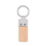 Rectangular shaped zinc alloy key ring with rubber wood.
