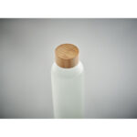 Glass bottle with special coating for sublimation and bamboo lid. Capacity: 650 ml. Bamboo is a natural product, there may be slight variations in colour and size per item, which can affect the final decoration outcome.