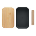 100% PLA maisist lõunasöögikarp bambusest kaane ja RPET kummipaelaga sulguriga. Mahutavus: 1000 ml