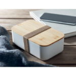Stiilne ja vastupidav roostevabast terasest lõunakarp bambusest kaanega, mahutavus 750 ml. Sobib ärikingituseks või meeneks logoga, säilitab toidu värskena ja annab naturaalse välimuse
