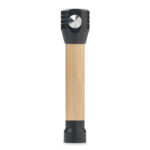 3 in 1 bamboo torch with emergency hammer and seat belt cutter. It has a magnetic base. Output lumen: 60. 2 AAA batteries excluded. Bamboo is a natural product, there may be slight variations in colour and size per item, which can affect the final decoration outcome.