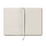 A5 märkmik kõva 600D RPET kaanega. Köidetud. 160 joonelist lehte taaskasutatud paberist (80 lehte). Sobiv elastne kinnitusrihm ja järjehoidjalint. FSC®-sertifikaadiga | FSC MIX CREDIT, P7.1, FSC-C213206.