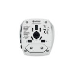 Universal SKROSS® travel adapter. Receptacles for Europe, USA/Japan, Australia/China. 2-pole, unearthed. Fulfils all international security-relevant standards and norms. Even child safe.