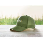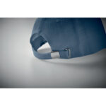 5 panel baseball cap in 100% hemp fabric 370 gr/m² with brass clips on adjustable strap closure. 5 stitched eyelets in matching colour. Size 7 1/4.