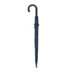 23 Inch auto open windproof umbrella in 190T pongee with black plated metal shaft. Black fiberglass ribs and black plastic tips. Curved black rubberised ABS handle with grey button. Manual closure.
