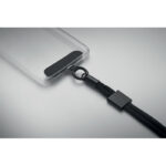 Adjustable phone cord holder wrist strap in RPET polyester. Length 25 cm.
