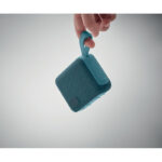 5.0 wireless speaker in ABS with RPET fabric and hanging cord. 1 Rechargeable Li-ION 800 mAh battery included. Includes an SD card port and an AUX/ USB cable. Output data: 5W, 3 Ohm and 5V. Playing time approx. 3h