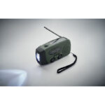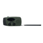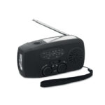 Portable AM/FM radio in ABS with LED Torch (2 settings) and a 1200mAh Power bank for emergency charging. Self powered by solar and hand crank.