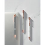 Komplekt sisaldab pliiatsit ja pastakat, sinise tindiga