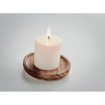 88gr round shaped wooden decorative base with vanilla fragranced candle.