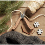 Stainless steel multi-function pocket knife with a cork cover and PU handle cord. 9 functions. It includes: Pliers, 2 openers, screwdriver with Philips bits, saw blades, knife, file and screwdriver with flat bit. Cork is a natural product, there may be slight variations in colour and size per item, which can affect the final decoration outcome.