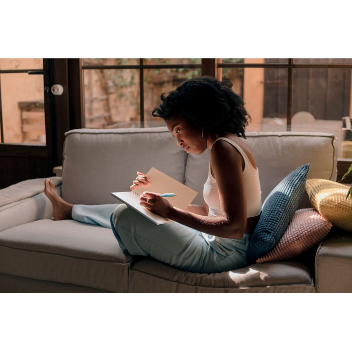 A5 Recycled carton cover soft ring binding notebook. 160 recycled lined paper pages (80 sheets). FSC®-certified | FSC MIX CREDIT, P7.1, FSC-C213206