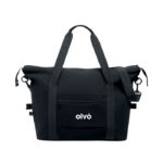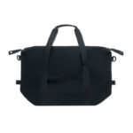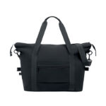 Nädalavahetusekott taaskasutatud tarbimiseelsest puuvillast ja taaskasutatud polüestrist (70%/30%), voodriga 210D RPET polüester. Sellel on eesmine tasku, lukuga tagatasku, eemaldatav ja reguleeritav õlarihm ning polsterdatud põhi. Käru hoidik tagaküljel.