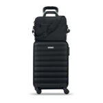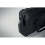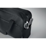 Käsipagasi reisikott 600D RPET, millel on suure lukuga esitasku, kahe väikest küljetaskut, 15-tolline sülearvuti sahtel, polsterdatud eemaldatav ja reguleeritav õlarihm, käru hoidik tagaküljel