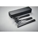 Re-usable PP portable cutlery set and case. Includes spoon, fork and knife.
