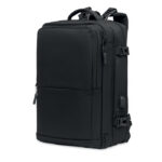 Travel Tech backpack in 600D RPET polyester. Modular / including several compartments.