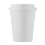 Double wall tumbler in PP with lid. Capacity: 300 ml.