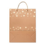 Elegant gift kraft paper bag with seasonal pattern. Gift tag included. 250 gr/m². This stylish and festive paper bag is the perfect packaging for a thoughtful gift for a special someone. Receiving a beautiful packaged gift is half the fun! FSC®-certified | FSC RECYCLED, P5.3, FSC-C213206