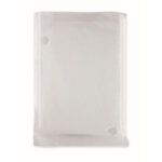 Foldable poncho with hood in biodegradable material and also packed biodegradable bag.