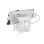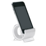 Mobile phone stand in plastic covered by transparent plastic layer.