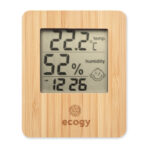 Weather station with bamboo front. Includes a clock, temperature, humidity display and calendar. 2 AAA battery not included. Bamboo is a natural product, there may be slight variations in colour and size per item, which can affect the final decoration outcome.