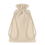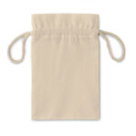 Small gift cotton draw cord bag. Size approx. 14 x 22cm. 105 gr/m².